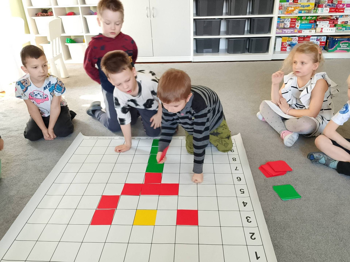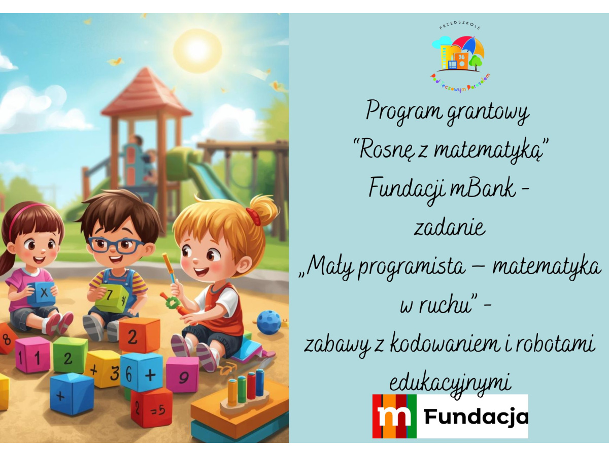 Dzieci z grupy Jeżyki, Muminki, Żabki oraz Smerfy wzięły udział w zajęciach z kodowania. Poprzez zabawę rozwijały logiczne myślenie oraz umiejętność współpracy. Przedszkolaki chętnie wykonywały różnorodne zadania, układały sekwencje i rozwiązywały proste zagadki, poznając podstawy kodowania w sposób dostosowany do ich wieku. Zajęcia dostarczyły dzieciom wiele radości i zachęciły je do odkrywania świata nowych technologii. Zadanie zostało zrealizowane w ramach grantu „Rosnę z matematyką”, finansowanego przez Fundację mBanku.