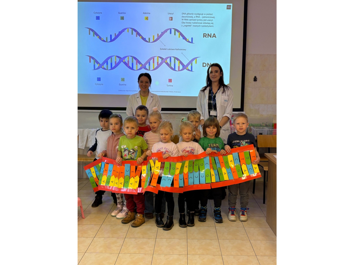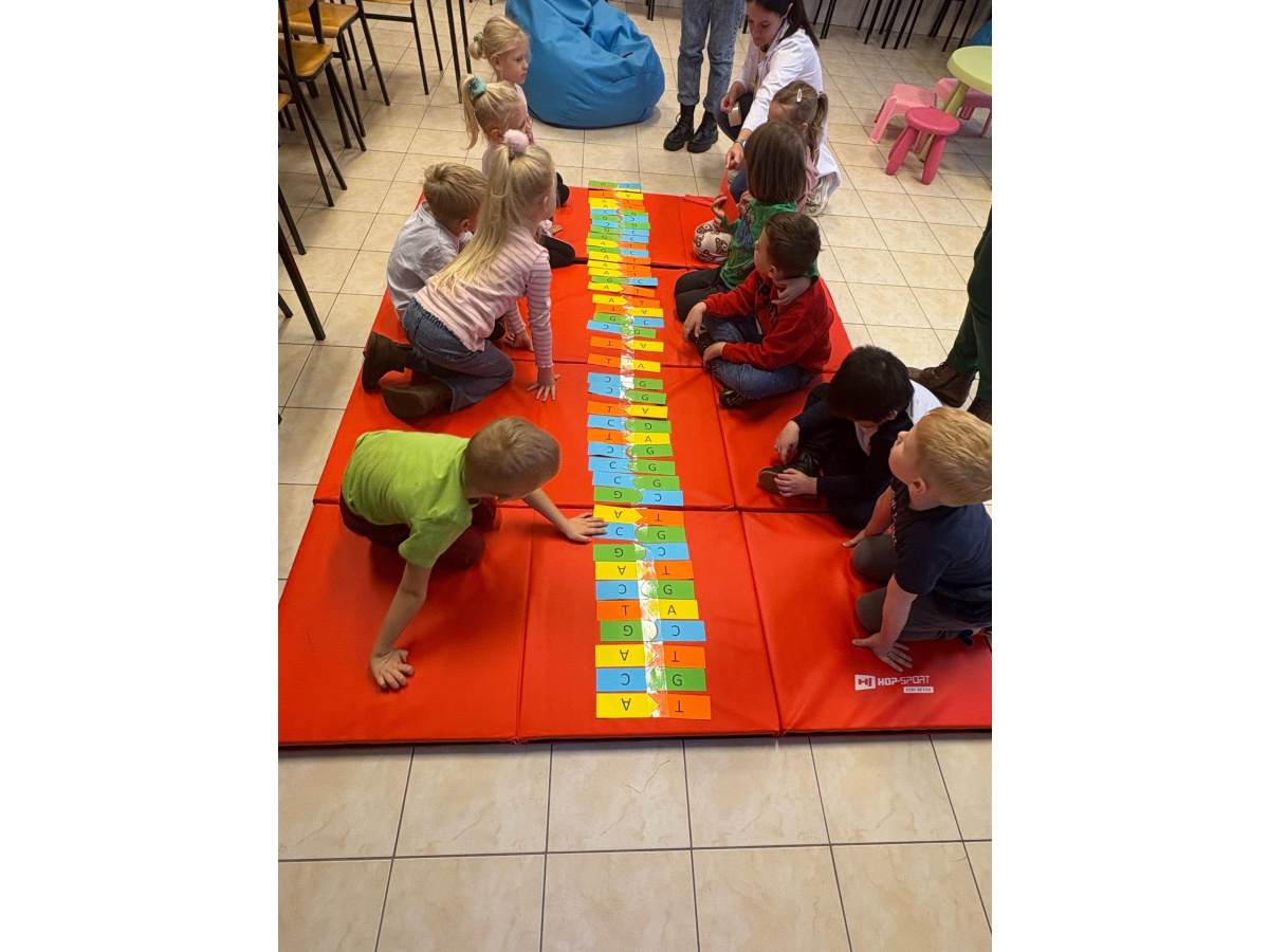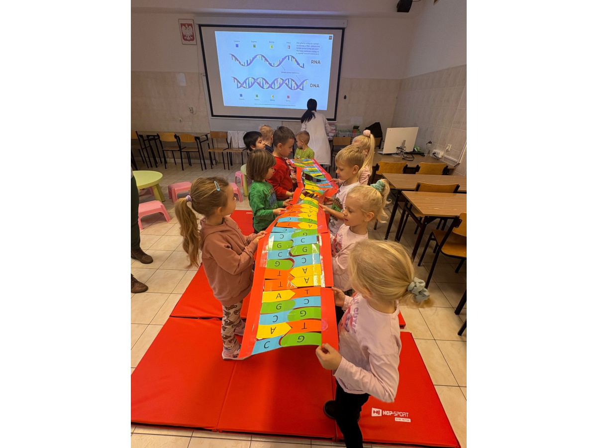 Grupa Misie wybrała się na wyjątkowe warsztaty w ramach Bydgoskiego Festiwalu Nauki „DNA, czyli dzieło natury w akcji. Genetyka dla smyka”. Dzieci dowiedziały się, czym jest nasze DNA, samodzielne układały jego model, a także porównywano swój wygląd. Była także zabawa w mieszanie kolorów na wzór prawdziwych „nitkowych kodów”.