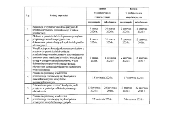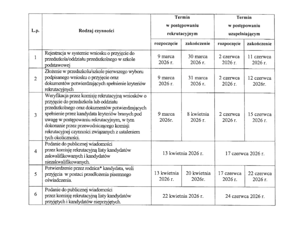 W załączniku znajdą Państwo zarządzenie Prezydenta Bydgoszczy dotyczące rekrutacji na rok szkolny 2026/2027. Zachęcamy do zapoznania się z terminami rekrutacji.